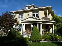 "Built in 1904, the Thomas N. Taylor house exemplifies the "dream home" of many in Utah's second generation. This house is significant as the most outstanding and well-preserved example of the Classical Box style in Provo. The box style was used extensively in Salt Lake City but was not common in Provo. Its classical detailing, irregular massing and unaltered condition make it particularly distinctive among the limited number of Provo examples of this type. Thomas N. Taylor was a popular man in the area. He served as manager of the Taylor Brothers Store, Provo mayor, and President of the Utah Stake of the LDS Church (Historic Provo p. 9)." The Thomas Taylor House was designated to the Provo City Landmarks register as of July 28, 1995.