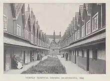 In 1613 he erected and endowed a hospital in Temple St., Bristol, called the Temple Hospital, for eight men and two women, and one man and one woman were afterwards added by himself.[6] In 1622 he gave to Bristol houses in Gray's Inn Lane, London, to support various charities. He had friendly relations with the Merchant Taylors' Company; White in his will made the company nominators to eight out of the twenty places provided in his almshouses at Sion College, and the company were also connected as auditors with the moral philosophy lecture which he had founded at Oxford in 1621. Five exhibitions were made for scholars of Magdalen Hall, and the manor of Langdon Hill, Essex, was conveyed to the university.
