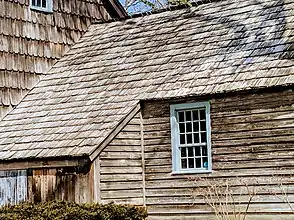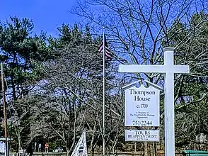 Thompson House is a historic house on N. Country Road in Setauket, Suffolk County, New York. It was built in 1709 and is a saltbox form dwelling. It is a rectangular, timber frame two story building with a one-story wing. It features a steeply pitched, asymmetrical gable roof with a central brick chimney.[2]