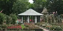 One of the more popular attractions in the park is the E. M. Mills Memorial Rose Garden, dedicated in 1924 on 2 acres (8,100 m2) at the southwest entrance to the park, across Ostrom Avenue from Syracuse University. Since 1970, the Syracuse Rose Society has maintained the garden in cooperation with the City of Syracuse Department of Parks, Recreation & Youth Programs.[4] Currently, the garden hosts 368 different varieties of roses (3850 plants in all) that surround a central gazebo.[5]