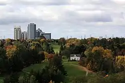 Uplands Golf Course opened in 1922 and alsoe designed by Stanley Thompson as a 18 hole course. In the 1980s it lost half to development, the land is now owned by city but lease to the club.[15] Uplands Ski Centre was opened in 1989 from part of the former course not used for housing.
