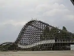 Thunder Road was a wooden roller coaster located at Carowinds amusement park on the border between Fort Mill, South Carolina, and Charlotte, North Carolina.[1] Opened in 1976 and built by Philadelphia Toboggan Coasters, the racing roller coaster cost $1.6 million to construct and featured two identical tracks that paralleled each other. The design of the ride was based on Rebel Yell (now Racer 75), a wooden racing coaster at Kings Dominion in Doswell, Virginia. Thunder Road was closed on July 26, 2015, to make room for expansion at the park. On August 27, 2015, Carowinds announced that the Boomerang Bay waterpark would be expanded and renamed Carolina Harbor. The expansion resulted in the removal of Thunder Road.