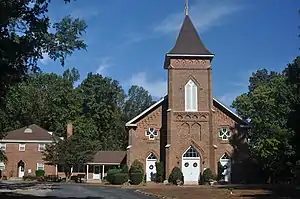 The current Gothic Revival church building was constructed between 1858 and 1860 and added to the National Register of Historic Places in 1984. The church was originally organized as early as 1753 as Cathey's Meeting Place on its current site on Cathey's Creek. The adjacent cemetery features gravestones dating back to 1755.[4] The church is still in active use, and the congregation is currently affiliated with the Presbyterian Church (USA).[5]