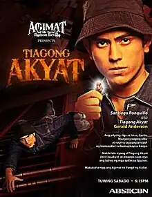Agimat: Ang mga Alamat ni Ramon Revilla Sr. presents Tiagong Akyat is a TV adaptation of a film entitled Huhulihin si... Tiagong Akyat ("Arrest Tiagong Akyat"), a 1973 film which gave Ramon Revilla, Sr. a FAMAS Best Actor trophy.[2] "Tiagong Akyat" was the alias of Santiago Ronquillo, a notorious thief who looted homes in Manila and nearby provinces in the 1920s.[3]