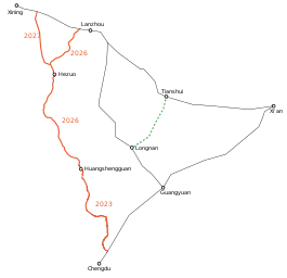 ![]() Map of the Tianshui–Longnan railway (in green) within the Lanzhou-Chengdu railway corridor | |