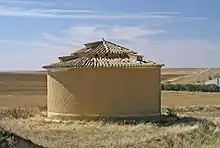 "Tierra de Campos" is located on a fertile, elevated plateau with an average height of around 720 metres (2,360 ft), its geography is typical of the Meseta Central. The ground is mostly made up of quite compact clay. The climate is continental with long, cold winters and short, hot summers. Rivers naturally irrigating the area are sparse and traditionally the land in Tierra de Campos has been used for dryland farming. The Channel of Castile, which cuts across this comarca, was developed for transport purposes but developed into an irrigation system. Some of the wetlands in Tierra de Campos, like the Laguna de la Nava de Fuentes and the Lagunas de Villafáfila, are important for the ecology of the region.[3] There are few natural forested areas left. The Tierra de Campos is the place with the highest concentration of bustard in the Iberian Peninsula, and possibly in the world.[4]
