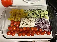 The simplicity and ease of creating the dish is something that has allowed the recipe to go viral.[31] The dish is made using a few simple ingredients: cherry tomatoes, a block of feta cheese, olive oil, pasta, basil, and garlic.[32] In 2019, a Finnish food blogger name Jenni Häyrinen developed the dish but it only went on to became viral in February 2021. The trend became so popular that it caused a shortage of feta cheese in Finnish grocery stores.[33][34]