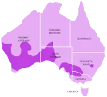 The western blue-tongued lizard is found chiefly in Western Australia. It is restricted to the far south in the Northern Territory, and divided into an eastern and western population in South Australia. It is listed as "Near Threatened" in Victoria, where it is restricted to the north, and "Threatened" in New South Wales, where it exists as a population to the southwest and in a pocket in the centre of the state. Threats to the species include predation by introduced species such as the red fox and domestic cat, clearance of habitat for agriculture, and destruction of the rabbit warrens used for shelter.