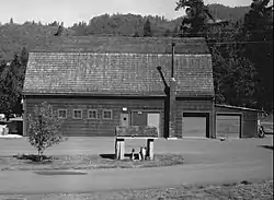With nine historic buildings, the Tiller Ranger Station is a classic Forest Service ranger station. All of the historic buildings were built by the Civilian Conservation Corps between 1935 and 1942. Their work included four ranger residences, an equipment warehouse, a vehicle repair shop, a barn (now used for storage), and two garages. The buildings were constructed in the Cascadian rustic architectural style using weatherboard, wood shingles, native lava stone, and concrete as the principal building materials. Many of the gables and shutters have the open pine tree logo common to Forest Service structures built during the 1930s.[3][6][7]