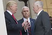 ![]() President Trump, Vice President Pence, and Defense Secretary Mattis at the Pentagon |