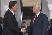 - ↑ "President Xi meets US secretary of state". China Daily. October 1, 2017. Archived from the original on October 1, 2017.