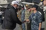 ![]() President Trump greets soldiers stationed on board the USS Kearsarge (LHD-3) |