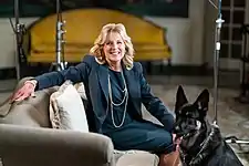 ![]() First Lady Jill Biden and Biden family dog Major prepare to record a Super Bowl LV video message |