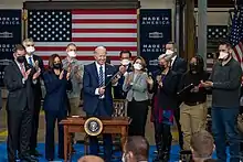 - ↑ "Remarks by President Biden on Rebuilding Our Manufacturing to Make More in America". Whitehouse.gov. February 8, 2022. Retrieved February 9, 2022.