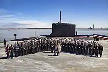 ![]() President Biden and First Lady Jill Biden with crew members of USS Delaware |