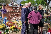 - ↑ Campbell, Colin (May 29, 2022). "Biden visits Uvalde elementary school after shooting". Yahoo! News. Retrieved June 1, 2022.
