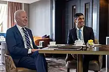 - ↑ @POTUS (June 8, 2023). "Today, I'll welcome the Prime Minister of one of America's closest Allies: the United Kingdom. Looking forward to it, PM @RishiSunak" (Tweet). Retrieved June 8, 2023 – via Twitter.