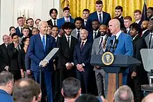 ![]() President Biden celebrates the LSU Tigers NCAA championship ![]() President Biden celebrates the UConn Huskies NCAA championship |