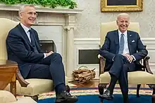 - ↑ @POTUS (June 6, 2023). "Proud to have Denmark as a NATO Ally and partner as we continue to protect our shared values and confront global challenges" (Tweet). Retrieved June 7, 2023 – via Twitter.