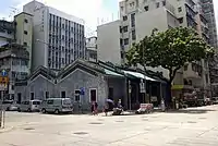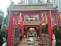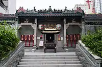 Shau Kei Wan Tin Hau Temple (筲箕灣天后廟) The original temple, built in 1845,[8] was destroyed by a typhoon in 1872. A new temple was erected in-situ in 1873.[9] Originally situated on a slope with its front part facing the sea. Renovated in 1876, 1902, 1920, 1948 and 2005. Managed by the Chinese Temples Committee.[10] The interior of the temple can be explored with Google Street View. |