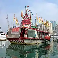 Two temples have a marine parade to celebrate the Tin Hau Festival (天后誕; Tiānhòudàn): Tin Hau Temple on Leung Shuen Wan (High Island)[3] and Tin Hau Temple on Tap Mun, which has it once every ten years.[4][5]