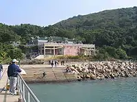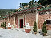 Tin Hau Temple, Yung Shue Wan (南丫島榕樹灣天后古廟) Built some time before the 2nd year of Guangxu reign (1876) of the Qing dynasty.[22] An uncommon feature of the temple is that it is guarded by two Western lions. They replaced the original Chinese lions which had been damaged in the 1960s.[23] |