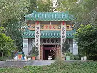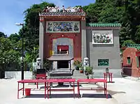 Tin Hau Temple, Tai Tseng Wai (大井圍天后古廟, 大井天后古廟) Built in 1688.[67] Rebuilt in 1981. The temple is shared by the three villages of Tai Tseng Wai, Ng Uk Tsuen and Shing Uk Tsuen.[68] |