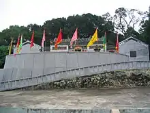 Tin Hau Temple, Chek Lap Kok (東涌赤鱲角天后宮) Built in 1823 at the north east of Chek Lap Kok. The entire temple was built of granite quarried on the island.[18] Repaired in 1978.[14] Dismantled in 1991 because of the construction of the new airport, and rebuilt in 1994 at its present location.[9][19] |