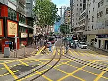 The Happy Valley branch of the Hong Kong Tramways branches out from the main line along Hennessy Road and runs southward through Tin Lok Lane. A tram stop of this branch is located in the street, near its intersection with Hennessy Road.