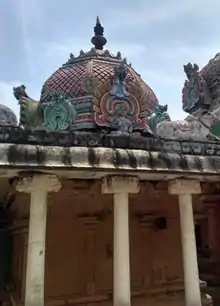The presiding deity is Shiva. He is known as Vardhamaneswarar. The goddess of the temple is Karunthazhkuzhali.[2] As the shrines of Vardhamaneswarar and Agniswarar are found as one shrine one has to circumambulate these shrines at one stretch. It is not possible to go around the shrine of Vardhamaneswarar. Apart from this presiding deity has no separate flagpost and kosta sculptures.[10] The presiding deity is also known as Konal lingam, i.e., it appears as distorted or skewed manner. So, it is also known as Konal Piran.[11]