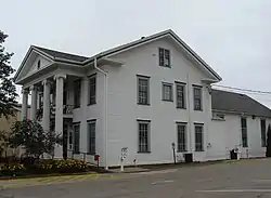 Built in 1865 as a private dwelling and later operated as a hotel. It is a 2+1⁄2-story, frame building in the Greek Revival style. The front facade features a portico with four Ionic order columns supporting a pediment and entablature. Two wings were added between 1865 and 1872, at which time it became the city hall.[2]