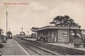 In the 1880s, there were four main line trains each way serving Tivetshall and five trains serving the Waveney Valley line. In 1881, the GER built a timber waiting room on the up side of the station.[3]