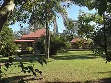 Whilst many houses were built for workmen, mine owners built close to their work sites. Next to the school in Mount Crosby Road the family of John Wright, proprietor of the Eclipse mine, built three houses on large allotments. The grandest, Oaklands is the central one; all have spacious gardens and are listed on the Queensland Heritage Register.[11]