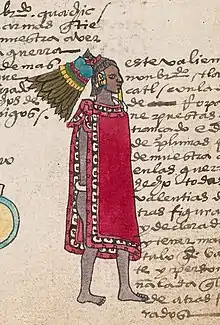 A tlacateccatl in a red cape from the Codex Mendoza.