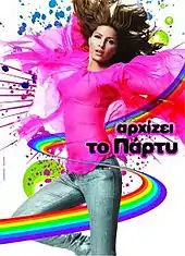 To Party Arhizei (Greek: Το πάρτυ αρχίζει; English: The party is starting) is the first official large-scale concert tour by Greek contemporary laïka and pop singer Helena Paparizou and first tour of Greece as a solo artist. The tour took place during the summer of 2008, and kicked off at the National Stadium in Kalamata on July 2, 2008, ending in Athens on September 19, 2008. The final concert at Theatro Vrahon in Athens was recorded, and released as a bonus DVD on Vrisko To Logo Na Zo: Deluxe Edition titled Live in Concert. Overall, the concert tour was a moderate success for Paparizou, with an audience total of approximately 192,000 over 29 concerts and one sold-out venue. Alpha TV broadcast the concert on television on December 30, 2008 as part of their holiday music schedule.