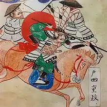 Toda Katsushige (戸田 勝成, 1557 – October 21, 1600) or Toda Shigemasa was a daimyō in Sengoku and Azuchi–Momoyama periods.[1] At first, Shigemasa served Niwa Nagahide. In 1585, after Nagahide died, Shigemasa served Toyotomi Hideyoshi and was given 10,000 koku at Echizen Province.