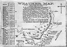 The folios grew out of Todd's desire to inform the colonists of South Australia of the immense size of weather systems and that in southern Australia, they generally progressed from west to east and not from east to west as commonly assumed by the early colonists.[2] To accomplish this, Todd displayed daily the last 6 synoptic charts for public viewing then bound and stored them in the folios.[3] The Todd weather folios consist not only of synoptic charts, but also include clippings from newspapers detailing weather statistics and events for all the eastern colonies of Australia. Newspapers from Brisbane, Sydney and Melbourne were collected as they came off the inter-colonial trains and were processed for pasting up next to the corresponding synoptic chart.