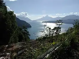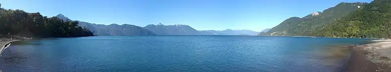 Lake Todos los Santos (Spanish for "All Saints Lake") is a lake located in the Los Lagos Region of southern Chile, 96 km northeast of the regional capital Puerto Montt and 76 km east of Puerto Varas, within the boundaries of the Vicente Pérez Rosales National Park. It has a surface area of 178.5 km² and a maximum depth of 337 m.[1] The Lake's National Park status has ensured protection to its environment. The catchment is largely covered with old-growth Valdivian temperate rain forests. The present form of the lake is the result of glacial and volcanic processes.[1][2]