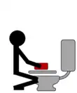 Since private lavatory rooms are not designed for eating, eating postures vary from person to person. Typically people sit on the lid of a Western-style toilet-- this is the most natural posture for eating in a lavatory and is shown in most fictional portrayals.[8] Other ways involve crouching in front of the toilet or standing in front of a Japanese-style squat toilet, which is at floor level.[9] Alternatively, the person may crouch or squat in front of the toilet. In the case of a Japanese-style toilet, the food is rested on the knees; the lid of a Western-style toilet can be used as a table. 100 Most Popular Words in Japan says, "If you need to spread out your meal, lower the lid of the toilet bowl to make it look like a table. The disadvantage of this posture, however, is that it is very tiring, and the sight of the toilet seat and water tank can be distracting".[9] This posture occurs in some fictional portrayals; for example, in episode 33 of the manga Zekkai Gakkyu, the main character Ohno eats squatting in a toilet room with a Japanese-style toilet.[10]