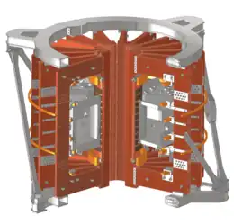 TCABR was originally designed and constructed in Switzerland, at the École Polytechnique Fédérale de Lausanne (EPFL), and operated there from 1980 until 1992, under the name of Tokamak Chauffage Alfvén (TCA).[1] The main focus of TCA was to assess and enhance plasma heating with Alfvén waves. A couple of years later, the machine was transferred to USP, passing through an upgrade and adding Brésilien to its name. The operation of TCABR began in 1999.[1]