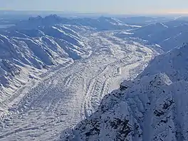 Tokositna Glacier is a glacier in the Alaska Range of Denali National Park and Preserve in the U.S. state of Alaska. The glacier originates in two major arms on the east side of Mount Hunter, moving east until the main arms join, then turning south. Tokositna Glacier is the source of the Tokositna River.[2] Spelling variants and alternate names include Tokasitna Glacier, Tokichitna Glacier and Tuqashitnu Li'a.[3]
