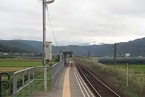 The station consists of one ground-level side platform serving a single bi-directional track. There is no station building and the station is unattended.