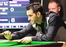 A 4–1 victory over Jamie Jones at the Paul Hunter Classic saw Ford reach the second ranking event semi-final of his career and he beat Thepchaiya Un-Nooh 4–2, closing the match with a 136 break.[31] In Ford's first ranking event final he was 2–2 with Mark Selby, before his fellow Leicester player knocked in two 50 plus breaks to defeat Ford 4–2.[32] At the English Open he beat Rory McLeod, Marco Fu and Joe Swail all by 4–2 scorelines, before losing 1–4 to John Higgins. Ford qualified for the German Masters by ousting Judd Trump 5–1 and then made a 147 in a first round 5–2 win over Peter Ebdon.[33] He saw off Mark King 5–2, but then lost 2–5 to Ali Carter in the quarter-finals.[31] Ford qualified for his third World Championship courtesy of victories over Jamie Bodle, Chris Wakelin and Hossein Vafaei.[34] From holding a narrow 2–1 advantage over Barry Hawkins in the first round, Ford was eliminated 3–10.[35]