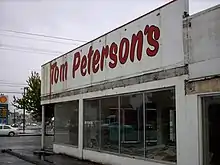 Peterson is widely known in Portland for writing and starring in his own local TV commercials, for his trademark flattop haircut,[1] catch phrases including "That's Tom Peterson's!", "Free is a very good price"[16] and referring to his store as "the happy place to buy."[12] In the 1980s, Peterson was described by Oregonian columnist Margie Boulé as "arguably, the most recognizable man in Portland."[17] From the 1960s, Peterson was a frequent sponsor of KPTV's Portland Wrestling programs and often appeared live at the now defunct Portland Sports Arena to advertise items from his store. He advertised regularly on Portland Wrestling until the show was cancelled in 1991.