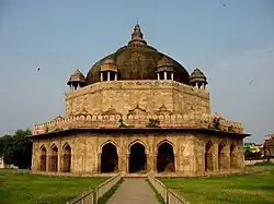 The tomb is built in the Pathan style, and considered a forerunner and model to the Tomb of Sher Shah.