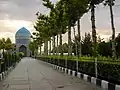 An 18-metre dome, covered in turquoise tiles, tops the mausoleum.[2][3][1] The tile work around the building is of matching colours.[2] Inside the mausoleum, the tomb of Al-Rabi ibn Khuthaym is located underneath the large dome.[1] There are also inscriptions written by calligraphers from the Safavid era, in the style of Thuluth and Bana'i, are present within the building.[3]