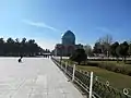 The mausoleum building is octagonal in shape. Four large iwans are on the middle of each side on the exterior. Surrounding the mausoleum is a large garden.[2][1]
