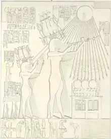 Akhenaten and Nefertiti offering to the Aten. From the tomb of Panehsy in Amarna. from Lepsius Denkmahler.