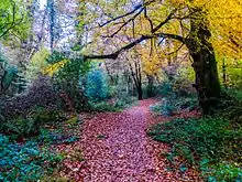 Tomnafinnoge Woods (Irish: Coillte Tom na Feannóige[1]) is the last surviving fragment of the great Oak Woods of Tinahely, which once clothed the hills and valleys of south Wicklow, Ireland. As early as 1444 these woods supplied timber for the construction of King's College, Cambridge, and later for Westminster Abbey, St Patrick's Cathedral, Dublin and Trinity College, Dublin. In 1634, the woods were estimated to cover 'more than many thousand acres', but from then on they were heavily exploited especially for shipbuilding.