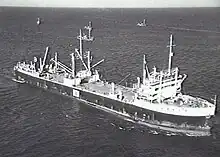 On 24 July 1943 she was sighted at a distance of 35,000 yards (32 km; 17 nmi) by Lieutenant Commander Lawrence R. Daspit's submarine USS Tinosa, making 13 knots (24 km/h; 15 mph) and without an escort to the west of Chuuk Lagoon.[17] Daspit closed to 4,000 yards (3.7 km; 2.0 nmi) and fired four torpedoes, two of which struck Tonan Maru No. 3's stern and exploded. The vessel was stopped dead in the water and Daspit closed to what he considered an ideal range and position, 875 yards (800 m; 0.432 nmi) directly abeam of the tanker. Daspit launched three consecutive torpedoes from this position which all hit but failed to explode. He then ordered the remaining torpedoes inspected and his crew could find no fault with them. Daspit fired a further six torpedoes which all hit but failed to explode. He returned to port with his final torpedo, intending to have it inspected by engineers at the dockyard. The Tonan Maru No. 3 remained afloat and was salvaged and returned to service with the assistance of Japanese vessels operating from Chuuk.[18] The US Navy discovered, through further tests, that the firing pins on their Mark 14 torpedoes failed to detonate when launched from a direct abeam position. New contact detonators were devised as a result of the incident.[19]
